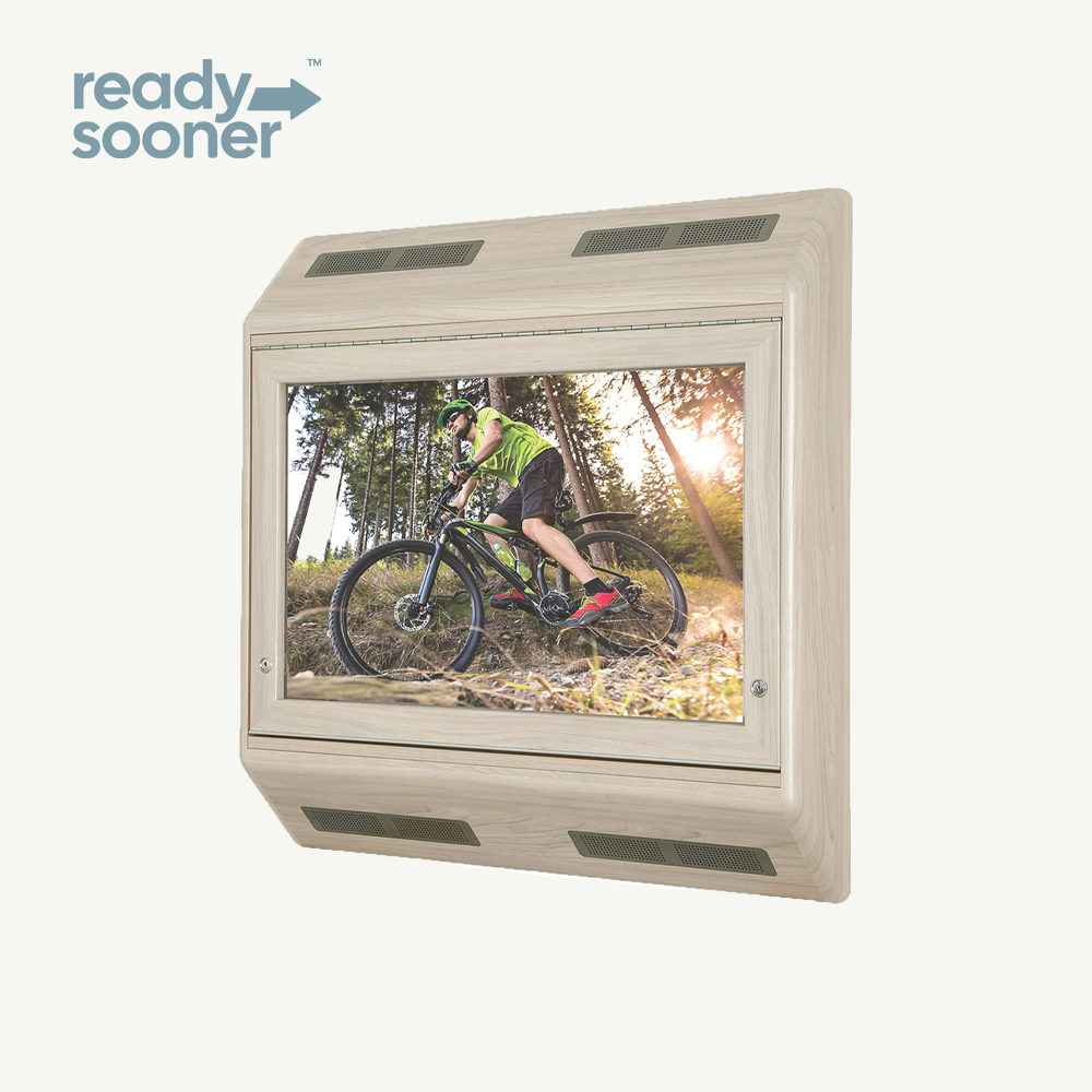 Secure Television Cabinet to suit TVs up to 32″ in size. Manufactured from 25mm melamine faced MDF in a beech finish with a high strength 8mm polycarbonate vision panel and inset doors featuring a strip hinge. Supplied with sound and ventilation panels built in with 2mm holes. Key locked doors.